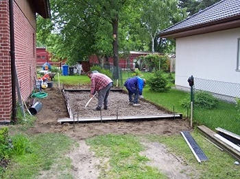 | Garagenbau Lieferung und Montage: Unsere Garagen werden werden sauber verpackt auf die Baustelle geliefert. Standardisierte Verbindungen, Befestigung und Montagemethoden sparen Montagekosten. Qualifizierte und erfahrene Monteure sorgen für eine gut ausgeführte Montage und kurze Bauzeiten. Aussenanlagen: Vorhandener Oberboden abschieben. Schottertragschicht und Frostschutzkies unter den Fahr und Parkflächen einbauen. Verbundsteine inklusive Feinplanum einbauen. Grünflächen mit Pflanzen, Sträucher und Bäumen anlegen. Entwässerungsleitung Regenwasser und Schmutzwasser Leitungsgraben herstellen. |